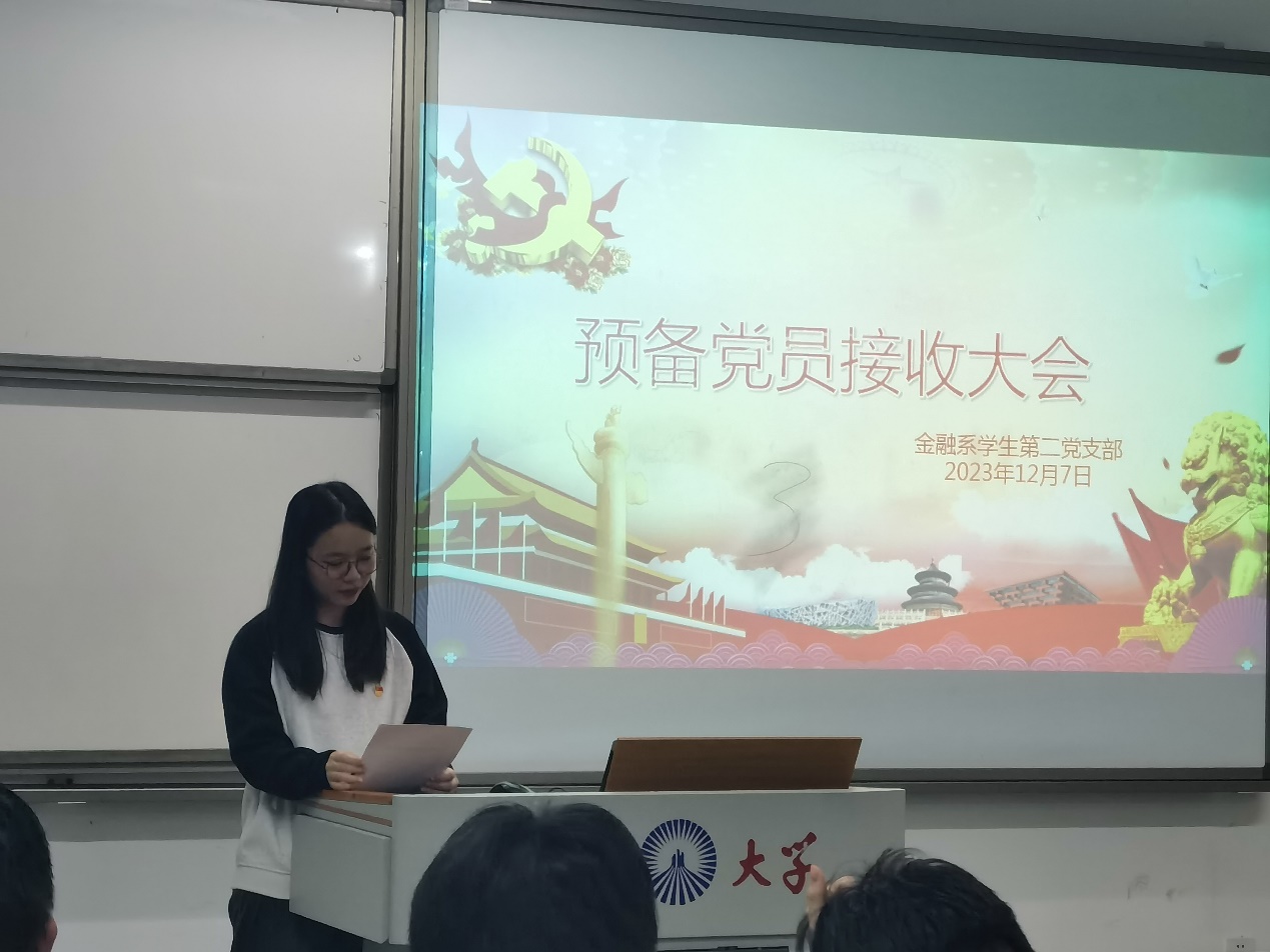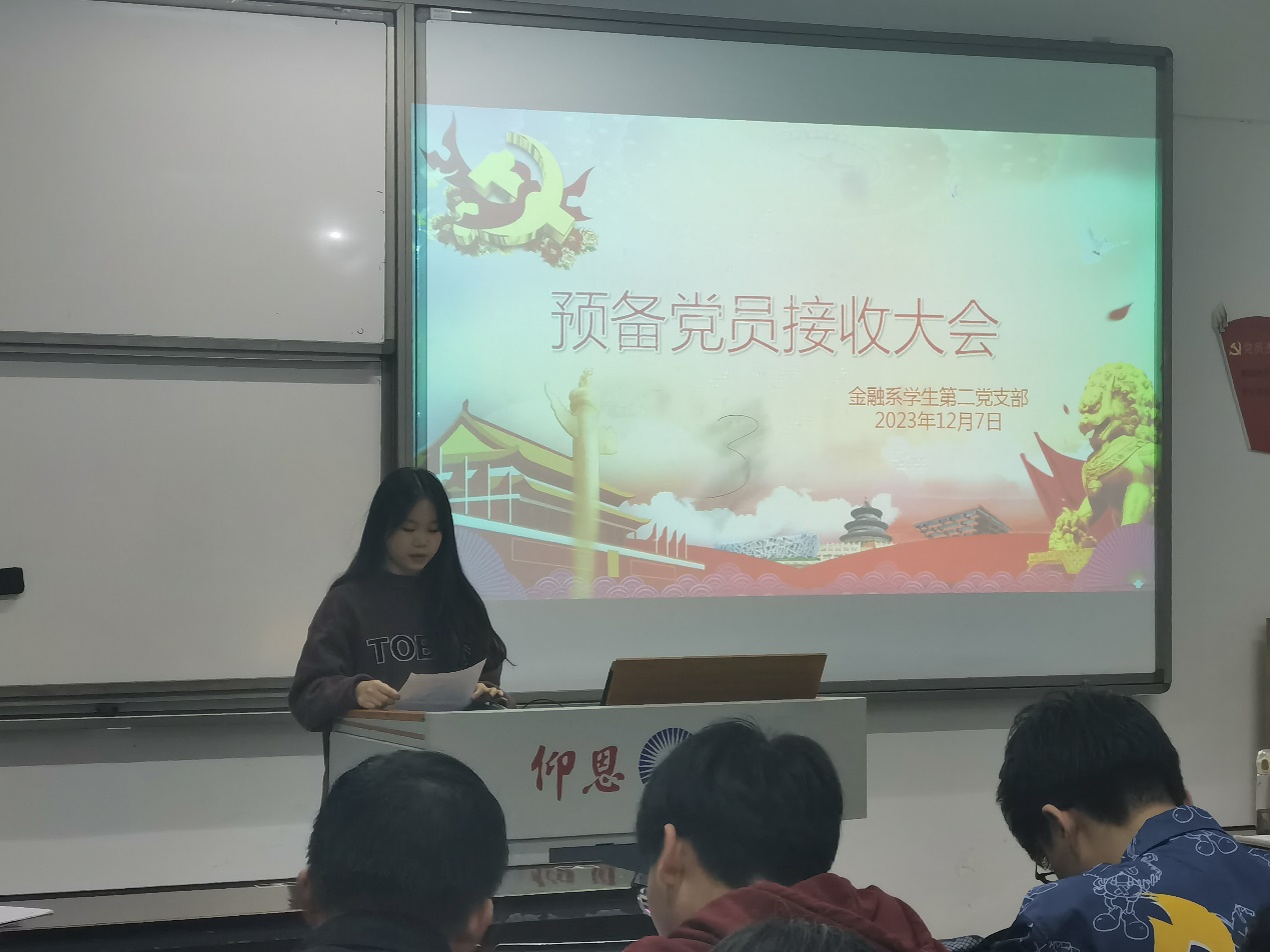 2023年12月07日下午16:30在仰恩楼A1-105,PA视讯平台金融系员工第二党支部召开预备党员接收大会,主要讨论吸收新党员。支部书记龚梦瑶等支部全体20名党员参加了此次接收大会。