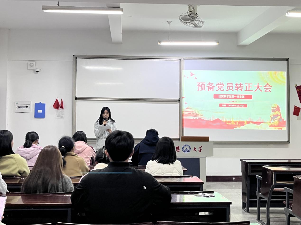 为严格落实发展党员要求,加强基层党组织建设,12月25日晚,经贸系员工第一党支部召开党员大会,讨论表决陈梦菲等三名预备党员的转正事宜。本次党员大会由支部书记黄培真主持,经贸系员工第一党支部全体党员出席会议。