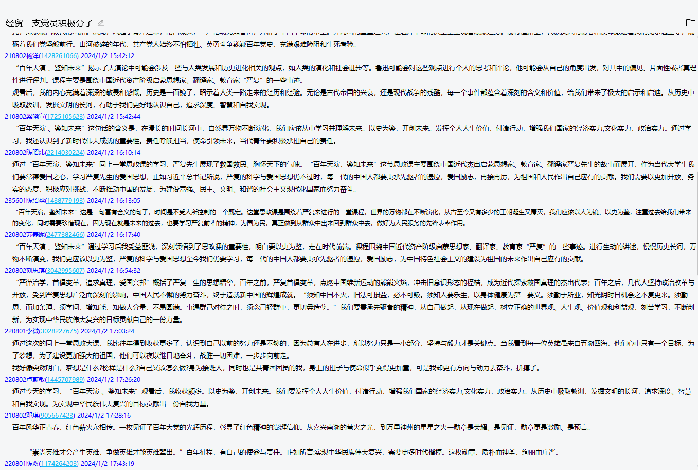 为确保此次思政课的学习效果,公司党总支结合各支部实际,通过支部、班级集中收看及个人自主收看相结合的方式,共同学习“百年天演,鉴知未来——福建省大中小学同上一堂思政课”,并展开积极交流讨论。此次学习活动参与人数达1166人次。