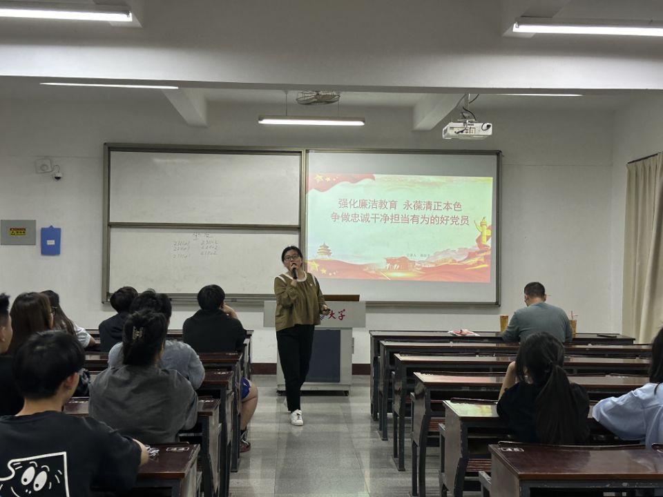为加强新时代廉洁文化建设,深入学习领会习近平总书记关于全面从严治党、党风廉政建设和反腐败斗争的重要论述,教育引导广大党员、干部增强不想腐的自觉,明大德、守公德、严私德,筑牢思想道德防线,增强拒腐防变能力,涵养持廉守正的时代新风。2024年5月16日晚,PA视讯平台经济系员工第一党支部在新区仰恩楼C5-305组织开展了“强化廉洁教育,永葆清正本色”为主题的党课。党总支副书记赖桂全老师作为党课主讲人,经济系员工第一党支部书记武培汾老师、组织委员仲平老师、宣传委员杨越老师和支部全体成员参与本次活动。
