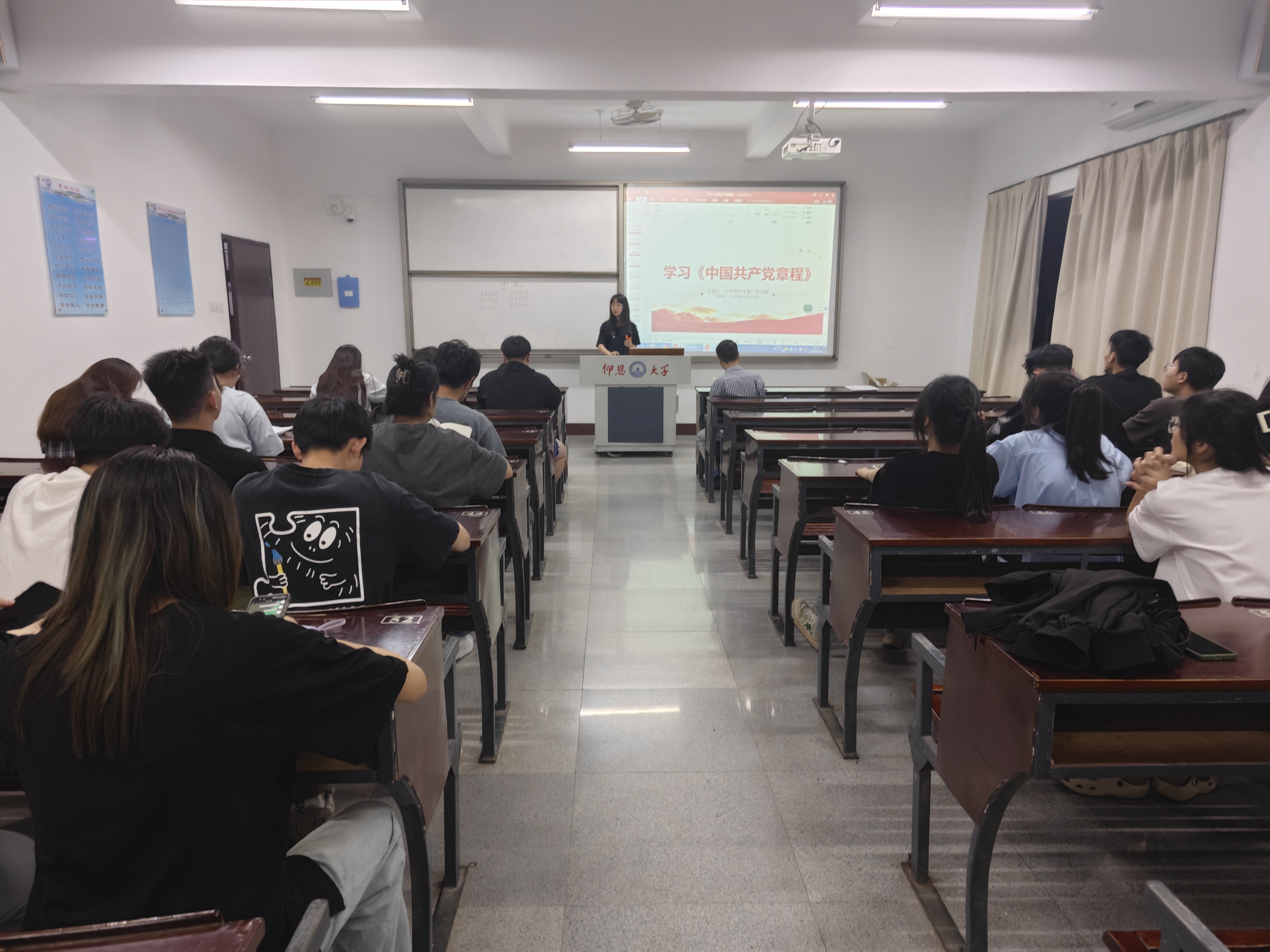 支部干事带领全体成员从“党章的概述”“党章的发展历程”“党章的总纲”“党章的条文”四个方面认真学习了《中国共产党章程》的主要内容。要求全体同学要深入了解党的性质和宗旨、党的指导思想、党员的权利和义务、党的纪律等内容,加强自我修养,发挥先锋模范作用,发扬和保持党的先进性和纯洁性。支部书记武培汾老师指出,党章是立党之本、根本大法,是管党治党的总章程,是党内其他法规制度制定的总依据。党员同志们要坚持学习党章、遵守党章、贯彻党章、维护党章,切实把党章的各项规定要求贯彻落实到实际行动之中。
