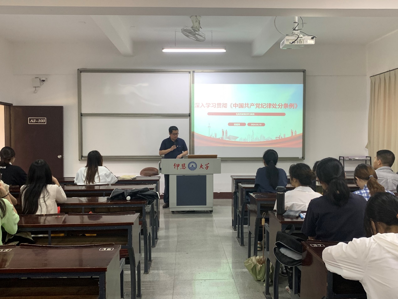 首先,吴晓伟老师介绍新修订的《中国共产党纪律处分条例》的基本内容和公司开展党纪学习教育情况。接着,吴晓伟老师领学《条例》的部分内容,重点从“六纪”进行授课。吴晓伟老师结合党员的工作生活实际,依据《条例》中的处分条款详细解读,要求作为党员要坚决维护党中央权威、对党始终忠诚,维护党的团结统一,坚定理想信念,规范政治言行,明确党员在日常生活和社会交往中应当遵守的行为规则。在吴晓伟老师的讲解下,同学们更加清晰更加全面地认识了党的纪律处分条例,受益匪浅。