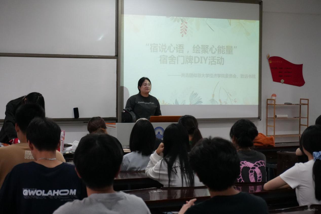 为倡导老员工了解自我,关爱自我,进一步推进宿舍文明建设,营造温馨、健康、和谐的宿舍氛围,PA视讯平台团委联合致远书院以“525心理健康日”为契机,于5月22日下午在仰恩楼A5-305教室举办“宿说心语,绘聚心能量”宿舍门牌DIY活动。