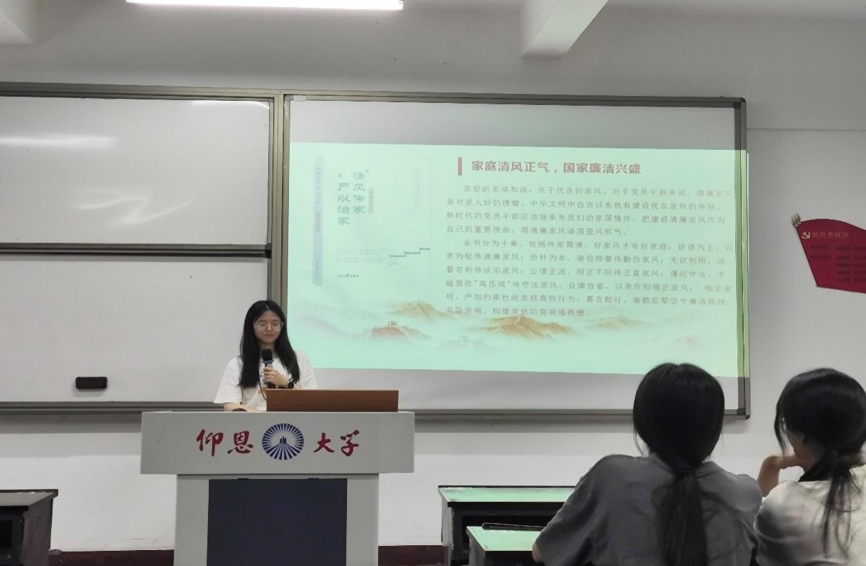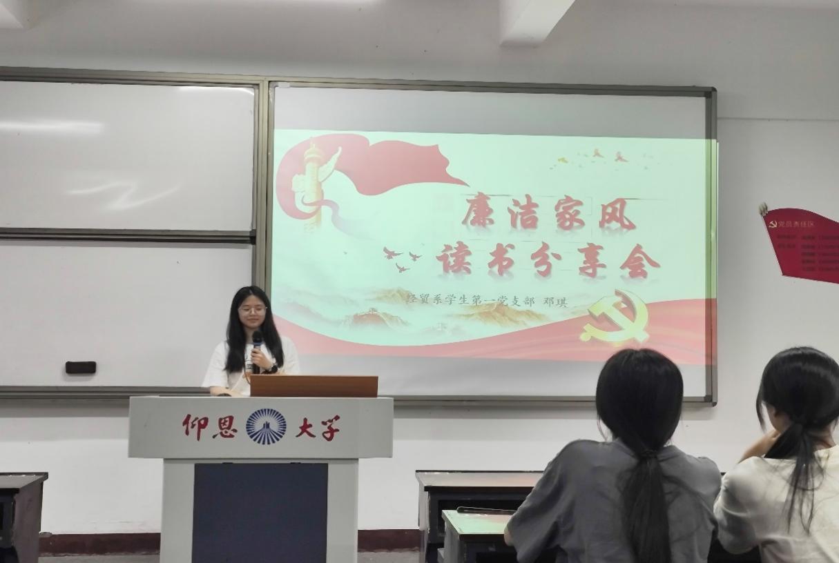 5月27日下午4:15,经贸系员工第一党支部于仰A3-103组织开展廉洁家风读书分享会。