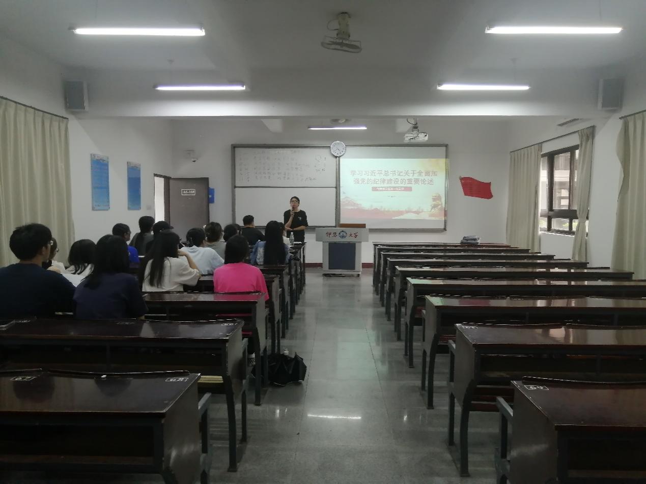 6月17日下午,经贸系员工第一党支部于仰恩楼A3-103开展“学习习近平总书记关于全面加强党的纪律建设的重要论述”主题学习会。本次学习会由黄培真书记主持召开。支部党员、积极分子参会。