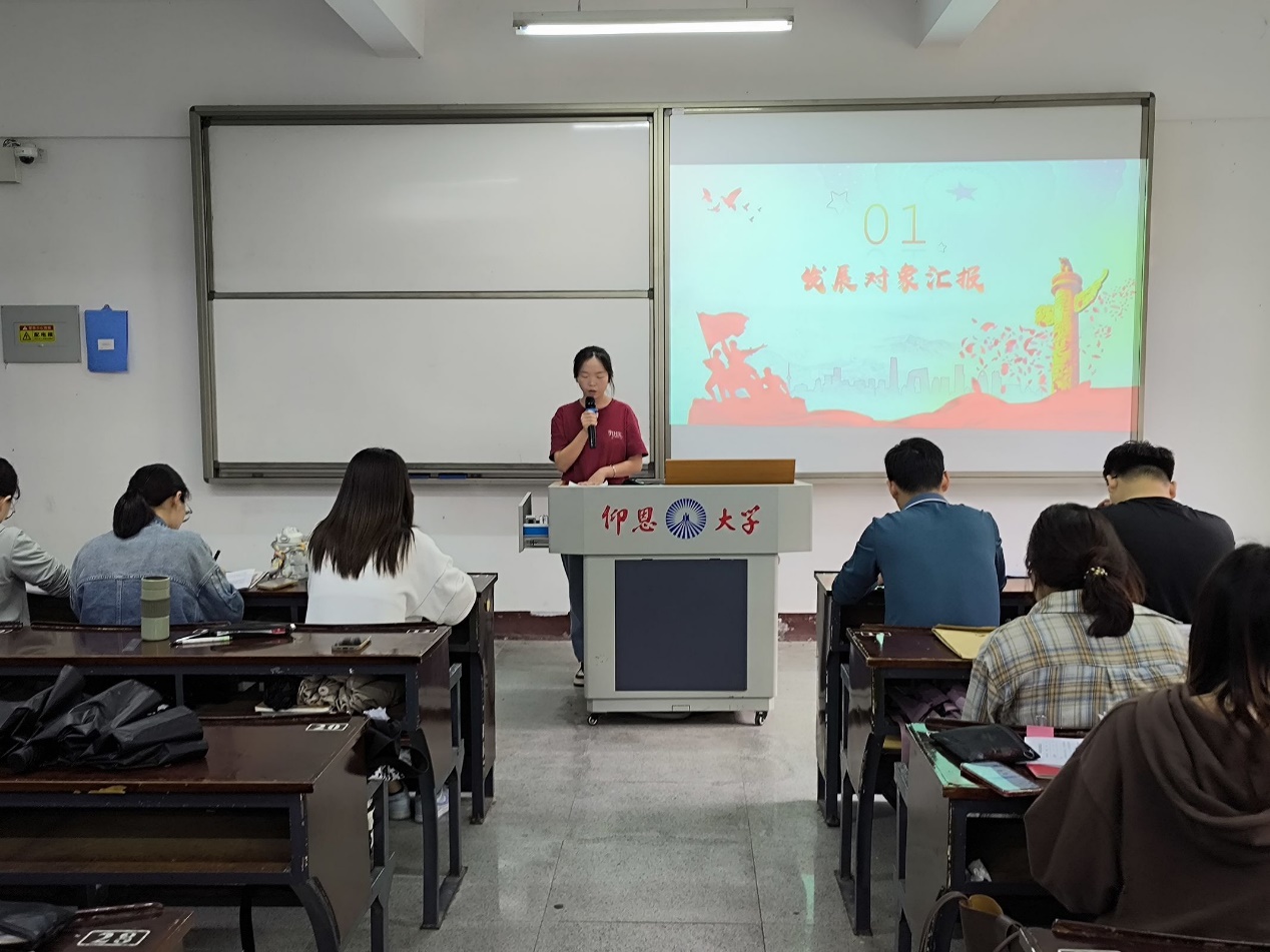“青年一代有理想、有本领、有担当,国家就有前途,民族就有希望。”为吸收广大优秀共青团员加入中国共产党,保证党的事业后继有人,增强党员队伍的生机和活力,2024年6月3日下午,金融系员工第一党支部在仰恩楼A2-105召开预备党员接收大会。本次大会的参与人员有支部书记何丽玲、副书记姚姝然、组织委员詹奕椿、宣传委员高嘉华、各发展对象培养考察人,和支部全体员工党员,包括即将接收为预备党员的10名发展对象。