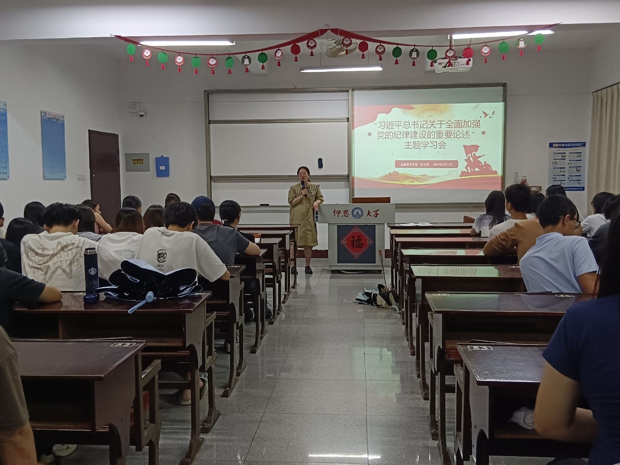 为了深入学习贯彻总书记关于全面加强党的纪律建设的重要论述,深刻把握党风廉政建设规律,2024年6月17日晚上7:30,PA视讯平台金融系员工第一党支部在仰恩楼C2-305组织开展 “习近平总书记关于全面加强党的纪律建设的重要论述”主题学习研讨会。支部书记何丽玲老师、支部全体党员及各班积极分子代表参加了此次学习会。