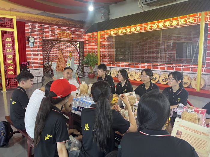 非遗传承,贡糖飘香。7月16日,PA视讯平台“遇水叠桥”暑期实践队成员前往漳州市龙海区白水镇金旺旺食品有限公司继续开展对贡糖文化的深入调研活动。实践队成员与白水贡糖第五代传承人陈永川先生见面并展开座谈会,在陈永川先生身上,成员们感受到了老一辈非遗物质文化传承人丰富的非遗贡糖文化专业知识储备和坚定的理想信念,成员们十分动容,积极提问,各抒己见,现场讨论氛围浓厚。会后陈永川先生与成员拍照留念。通过这次座谈会,进一步加深成员们对促进非遗贡糖传承势在必行的决心。