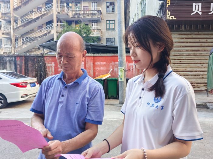 实践队在麻沙镇的主要路口和公共场所竖立了“坚持人水和谐,建设生态文明”的标语立牌,以此提醒过往行人关注水资源保护的重要性。此外,实践队还向当地居民分发了《共护麻阳溪倡议书》,呼吁大家共同努力,保护麻阳溪的清澈水质和周边环境。在与居民互动的过程中,实践队员们耐心解释保护水资源的重要性,并听取了他们的意见和建议。这种双向交流加深了乡镇居民对环保行动的理解和支持。
