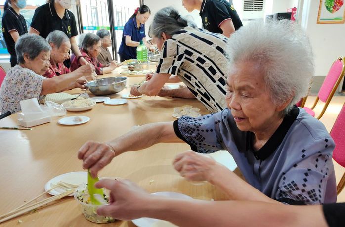 午后,实践队队员们邀请了福利中心的老人们来到福利中心颐养楼三楼活动大厅,包饺子活动在欢声笑语中拉开序幕。队员们自己动手调好了馅料供参与老人们使用,老人们耐心地指导着年轻的队员们如何捏出完美的饺子皮,如何巧妙地包入馅料。长者们耐心传授,队员们虚心学习,每一个饺子都承载着敬意与爱意。这不仅是一次烹饪的实践,更是一场代代相传的技艺交流,让年轻一代感受到了传统文化的魅力。活动结束后,老人们感受到了来自实践队队员们的活力与细心,同时也感受到了来自年轻一代的尊重与关爱,而队员们也收获了宝贵的人生经验,与老人们也有了更深厚的情感联结。