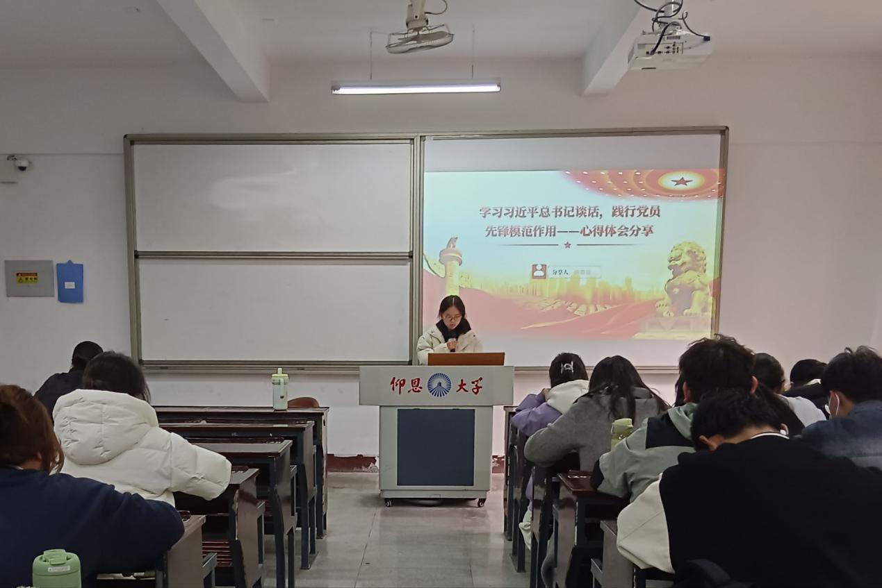 活动伊始,主持人阐述了习总书记在近期重要会议上的讲话精神,强调了党中央对当前形势的科学判断、对未来发展的宏伟蓝图以及对党员干部的殷切期望。随后,各班积极分子代表轮流分享学习心得和感悟,大家结合学习经历和自身情况,阐述了如何在学习、工作和生活中贯彻落实习总书记的讲话精神,融入党的创新理论。其中,入党积极分子许璐瑶同学结合在校任职经历和实践经验,积极响应习近平重要讲话指示精神,表示要将所学所得融入到今后的学习和工作中,做到坚定信念,勇于担当,敢于作为。