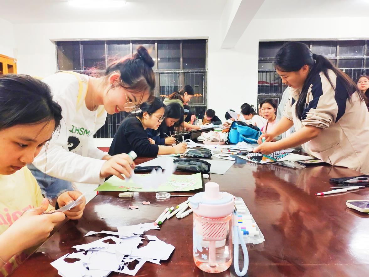 图1 同学们在认真制作纸鸢作品