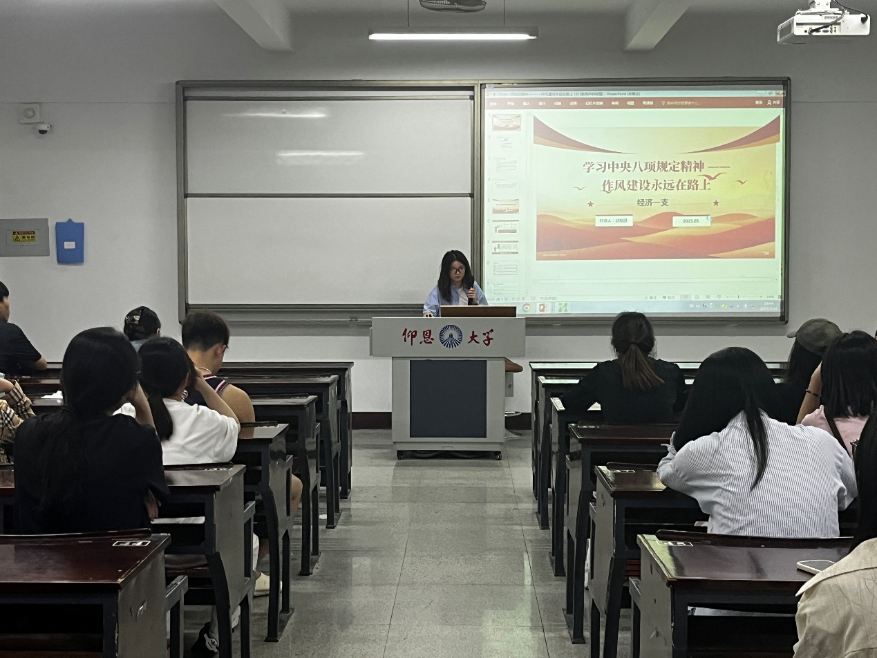为扎实推进深入贯彻中央八项规定精神学习教育,持续深化作风建设,推进全面从严管党治学,2025年5月14日,经济系员工第一党支部在新区仰恩楼C1-303组织开展“学习中央八项规定精神—作风建设永远在路上”为主题的党课学习。经济系员工第一党支部全体党员及积极分子参与此次党课。