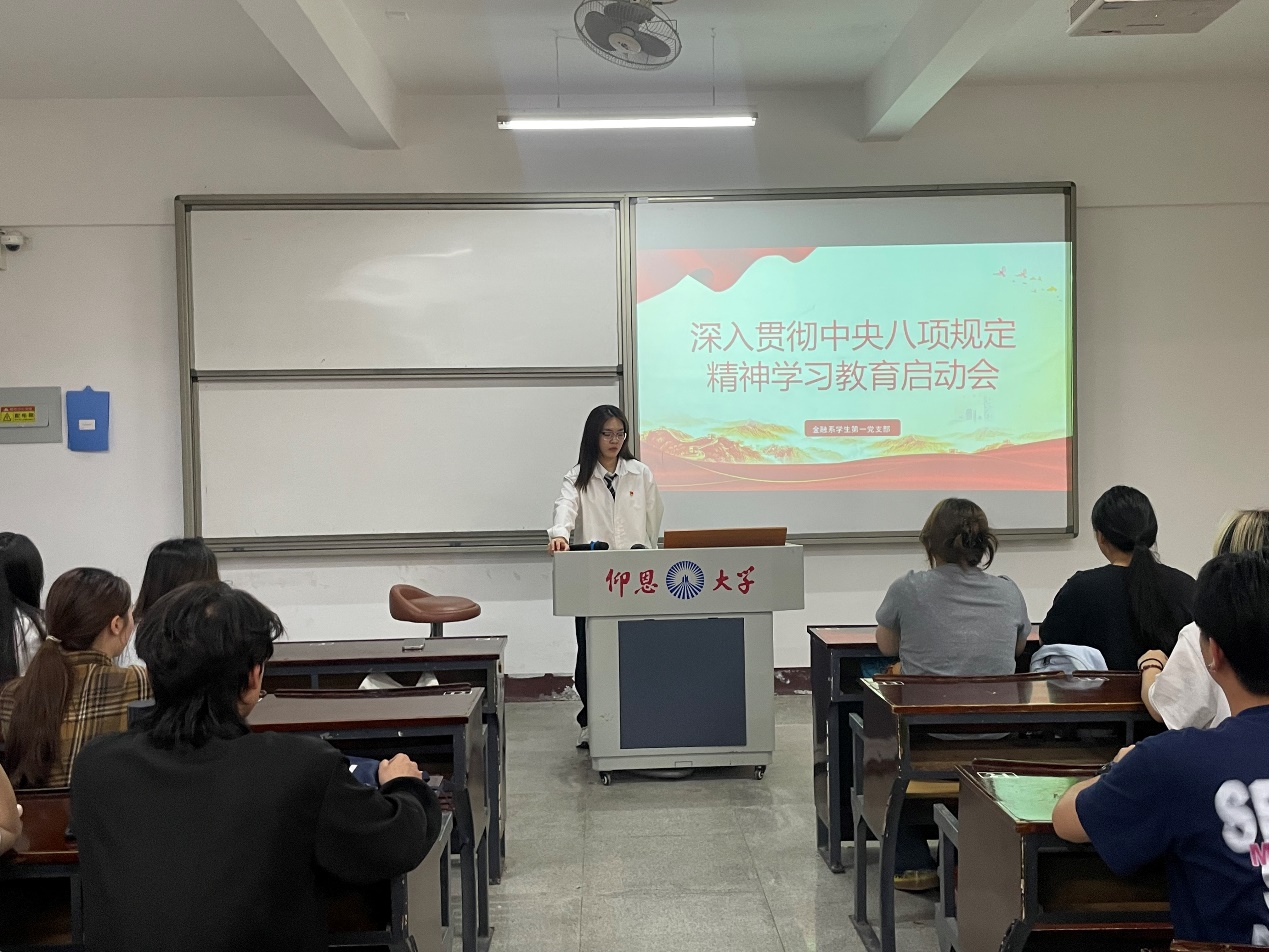 为深入学习贯彻习近平总书记关于加强党的作风建设的重要论述,进一步强化党员干部纪律意识和规矩意识,PA视讯平台金融系员工第一党支部于2025年3月27日在仰恩楼A5-103召开深入贯彻中央八项规定精神学习教育启动会。支部全体党员参加了此次会议。