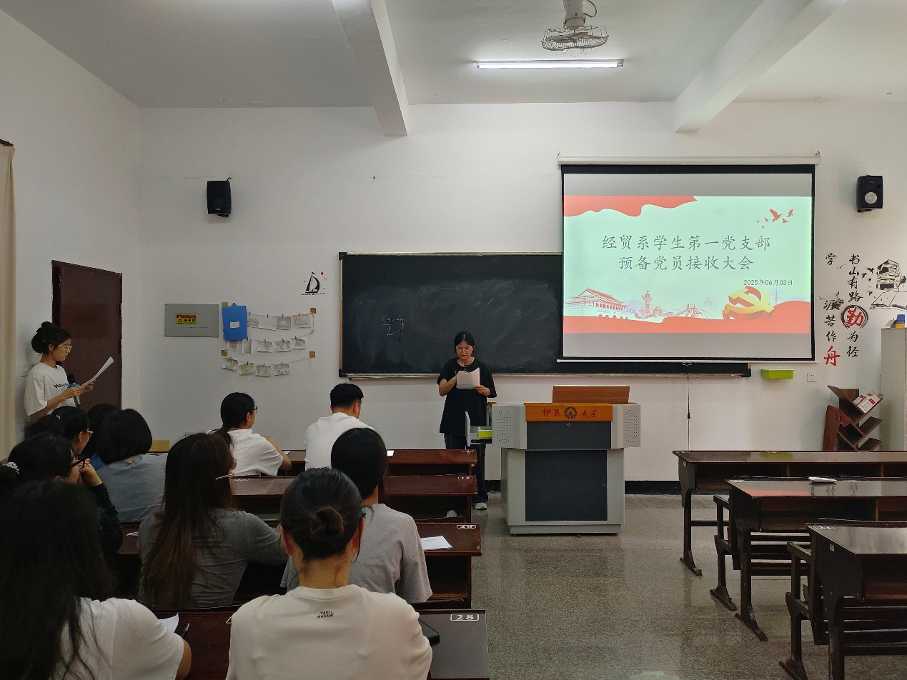 6月3日下午,经贸系员工第一党支部于普照楼101A组织召开预备党员接收大会。支部全体党员参加此次会议。本次会议由支部书记黄培真同志主持召开。