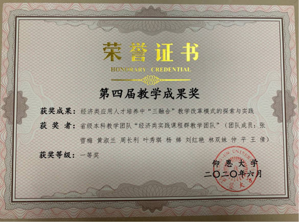 建设成效:建设有省级本科教学团队“经济类实践课程群教学团队”,双师型教师比例由不足30%提升至68.75%,实践教学改革多次获校级教学成果奖一等奖,员工学科竞赛和创新创业大赛获奖数量增长40%,团队队伍实践教学能力显著增强。
