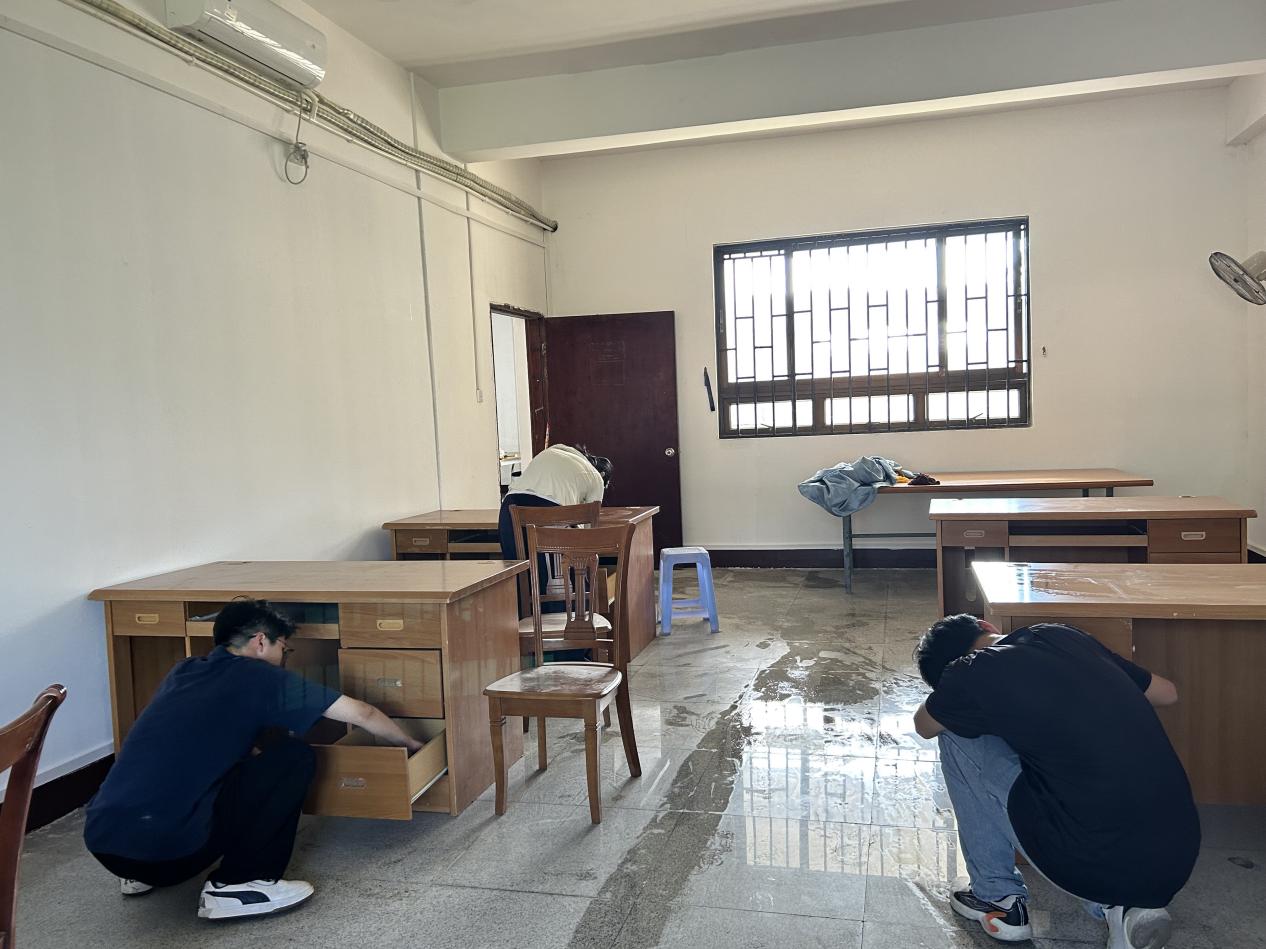 同学们秉持着认真负责态度,对办公区域桌椅、地面等细致清洁,发挥不怕累、不怕脏的优良作风,用行动践行党员初心使命,让办公环境焕然一新。